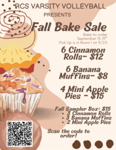 Our Redding Christian Varsity Girls Volleyball team is excited to announce a fall Bake Sale Fundraiser! Instead of a traditional sale, you’ll place your order