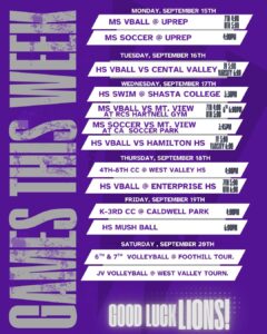 Full schedule this week for our athletes! Good luck and safe travels to athletes and families!