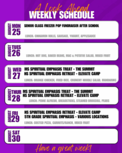 Safe travels to staff, parent’s and students who are traveling for spiritual emphasis this week!